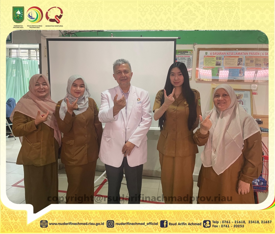 Foto bersama dr. Afdhal, Sp.U dan Instalasi PKRS RSUD Arifin Achmad Provinsi Riau