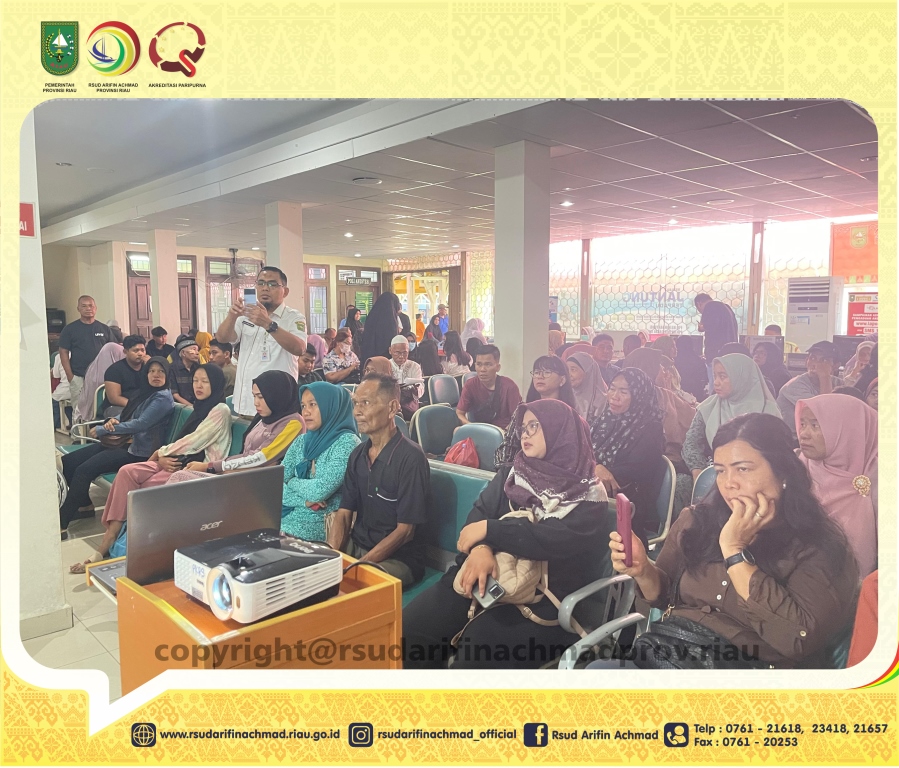 Instalasi PKRS RSUD Arifin Achmad Provinsi Riau mengadakan penyuluhan “Infertilitas Idiopatik pada Pria” kepada pengunjung di ruang tunggu poliklinik rawat jalan dengan menghadirkan narasumber dokter spesialis Urologi RSUD Arifin Achmad Provinsi Riau Dr. dr. Afdal, Sp.U, Subsp. And (K).