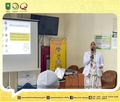 Instalasi PKRS RSUD Arifin Achmad bersama dr. Yulanda Marta Lena, Sp.MK mengadakan penyuluhan kesehatan dengan topik “Bijak Menggunakan Antibiotik” kepada keluarga pasien dan pengunjung ruang tunggu poliklinik jantung RSUD Arifin Achmad Provinsi Riau.