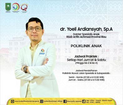 Jadwal Praktek dr. Yoeli di Poliklinik Anak RSUD Arifin Achmad Provinsi Riau